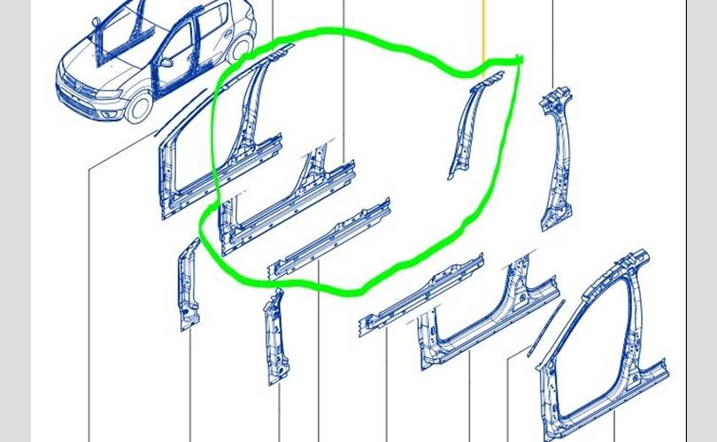 Порог со стойкой Renault Sandero II 2016 764602807R K7M812, правый