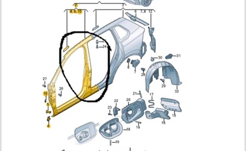 Порог со стойкой Volkswagen Tiguan 2019 5NA809836 AD1 DFH, правый