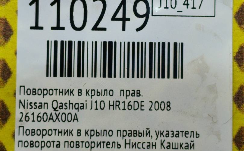 Поворотник в крыло Nissan Qashqai 2008 26160AX00A J10 HR16DE, правый