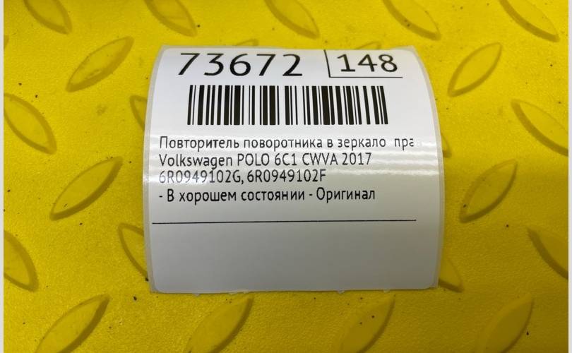 Повторитель поворотника в зеркало Volkswagen POLO 2017 6R0949102F 6C1 CWVA, правый