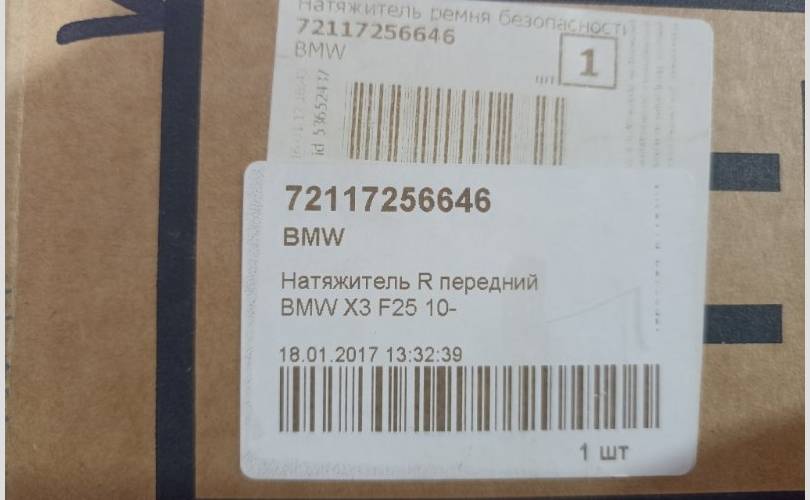 Преднатяжитель ремня безопасности BMW X3 72117256646 F25, правый