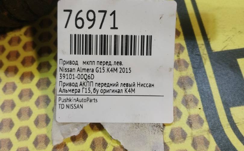 Привод АКПП Nissan Almera 2015 3910100Q6D G15 K4M, передний левый