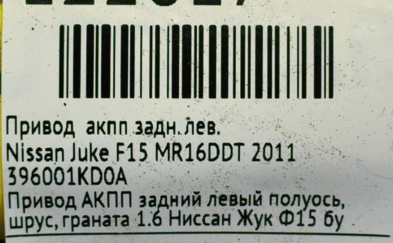 Привод АКПП Nissan Juke 2011 396001KD0A F15 MR16DDT, задний левый