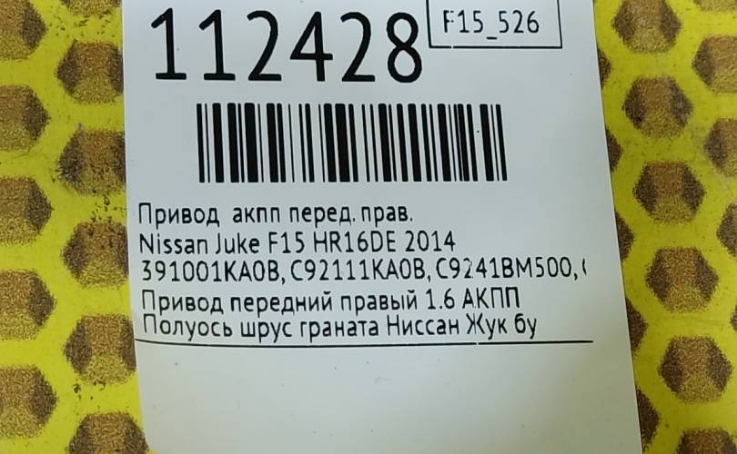 Привод АКПП Nissan Juke 2014 391001KA0B F15 HR16DE, передний правый