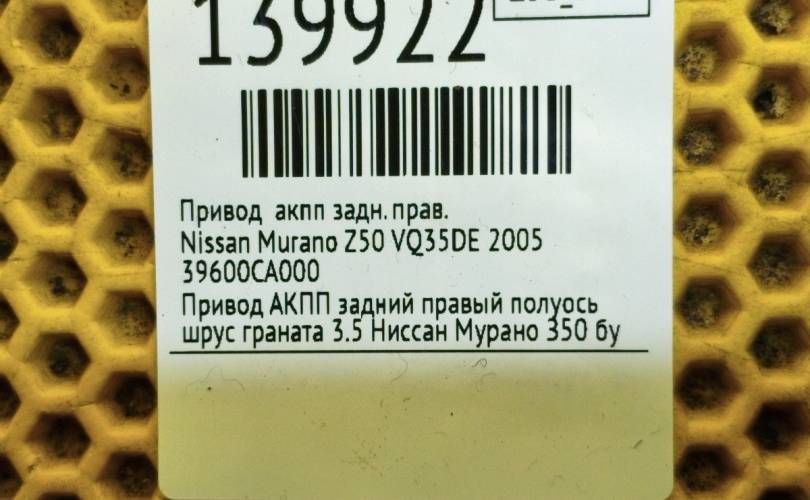 Привод АКПП Nissan Murano 2005 39600CA000 Z50 VQ35DE, задний правый