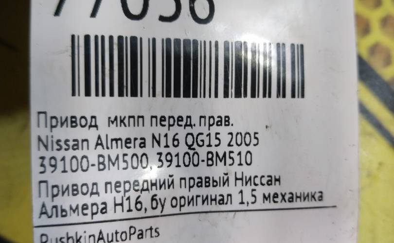 Привод МКПП Nissan Almera 2005 39100BM500 N16 QG15, передний правый