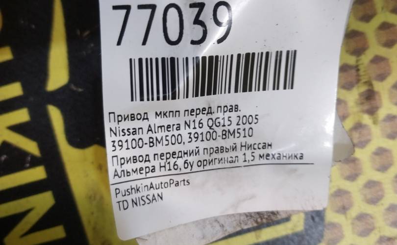 Привод МКПП Nissan Almera 2005 39100BM500 N16 QG15, передний правый
