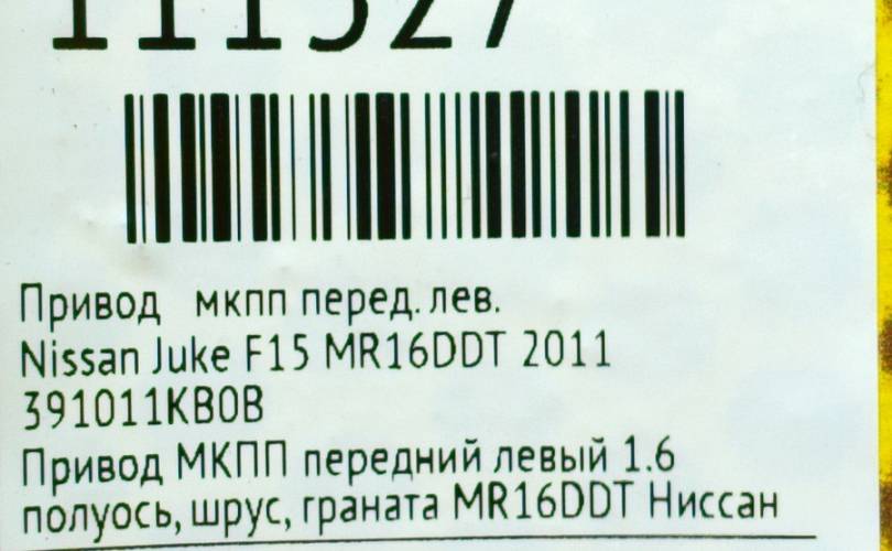 Привод МКПП Nissan Juke 2011 391011KB0B F15 MR16DDT, передний левый
