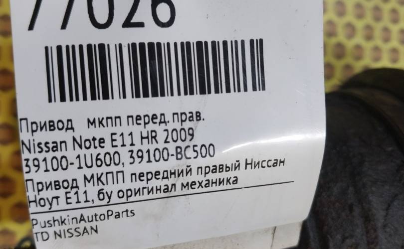 Привод МКПП Nissan Note 2009 391001U600 E11 HR, передний правый