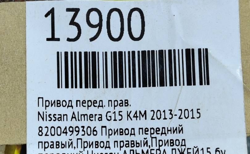 Привод Nissan Almera 2015 8200499306 K4M, передний правый