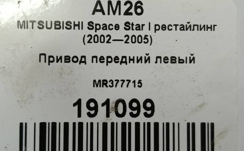 Привод передний левый на MITSUBISHI Space Star I рестайлинг (2002—2005) MR377715
