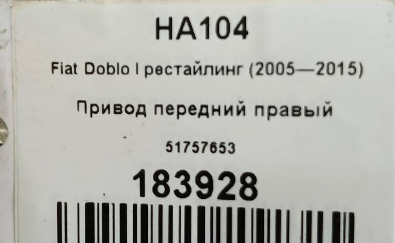 Привод передний правый на Fiat Doblo I рестайлинг (2005—2015) 51757653
