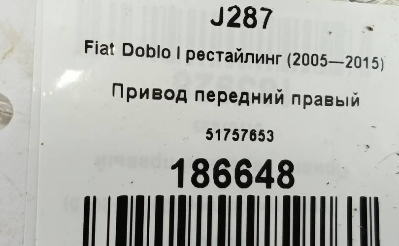 Привод передний правый на Fiat Doblo I рестайлинг (2005—2015) 51757653