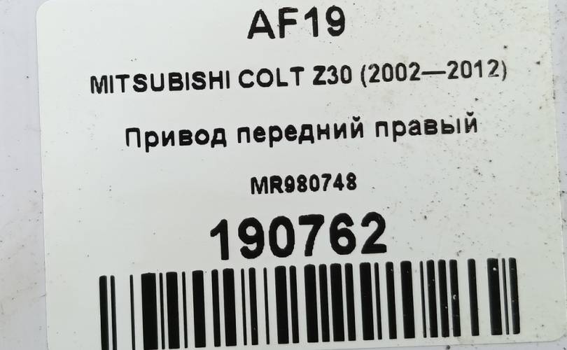 Привод передний правый на MITSUBISHI COLT Z30 (2002—2012) MR980748