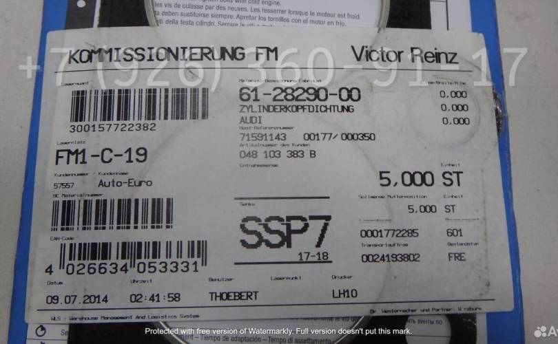Прокладка ГБЦ Ауди 100 Reinz 612829000