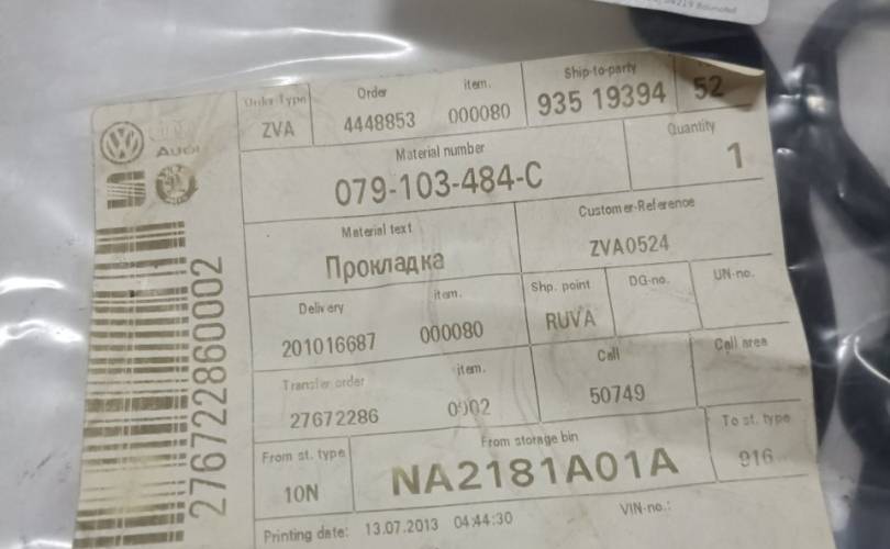 Прокладка клапанной крышки Audi A5 2012 079103484C