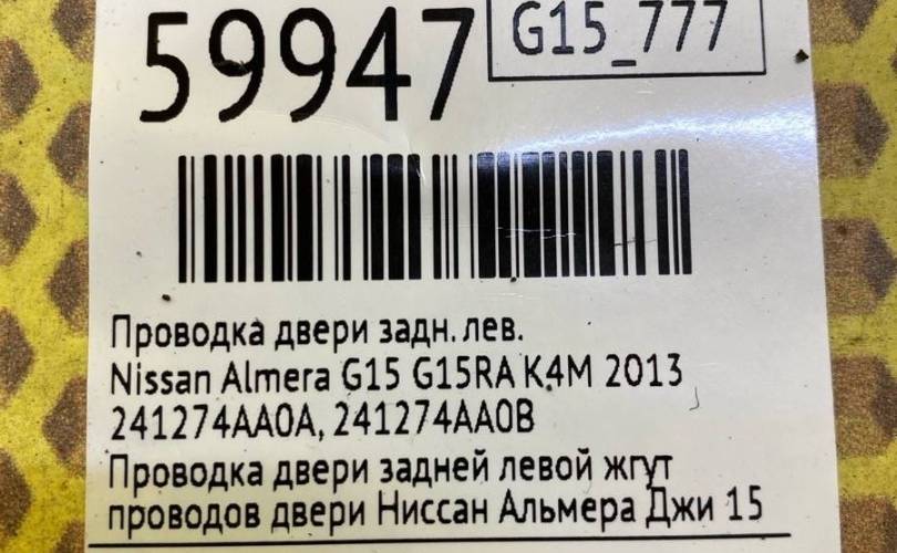 Проводка двери Nissan Almera G15 2013 241274AA0A G15RA K4M, задняя левая