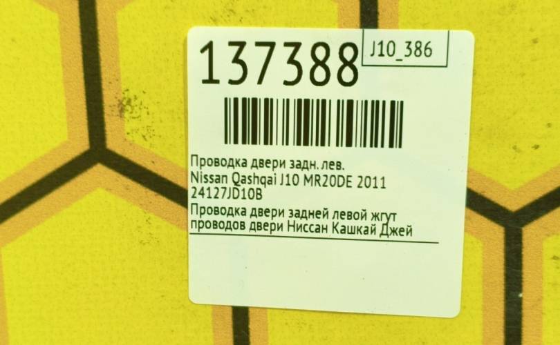 Проводка двери Nissan Qashqai 2007 24127JD10B J10 MR20DE, задняя левая