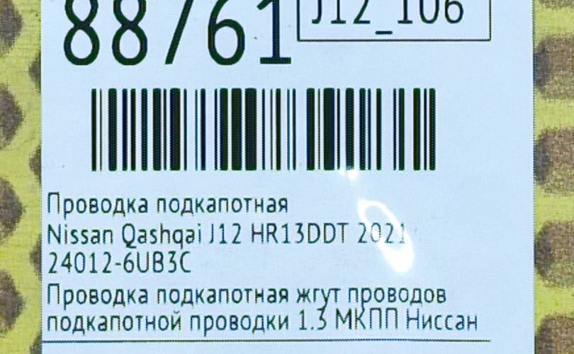 Проводка подкапотная Nissan Qashqai 2021 240126UB3C J12 HR13DDT