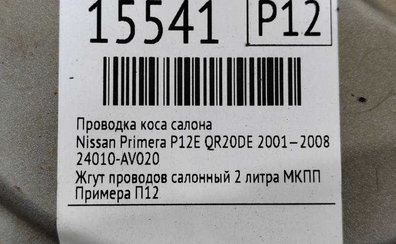 Проводка салона Nissan Primera 2001—2008 24017AU261 P12 QR20DE