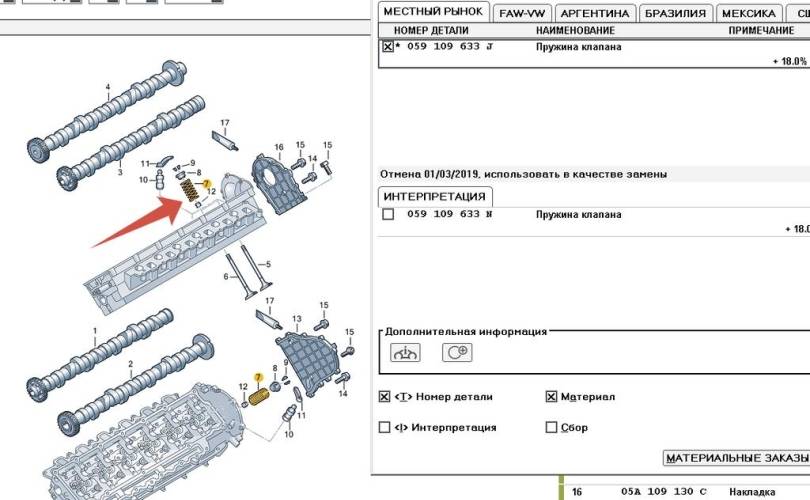Пружина клапана Audi Q7 4L рестайлинг (2009—2015) 059109633j 059 109 633 j 059109633N 059 109 633 N
