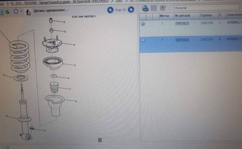 Пружина передняя Cadillac Escalade GMT900 (2006—2014)