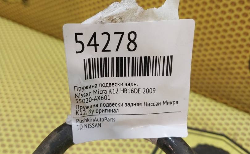 Пружина подвески Nissan Micra 2009 55020AX601 K12 HR16DE, задняя