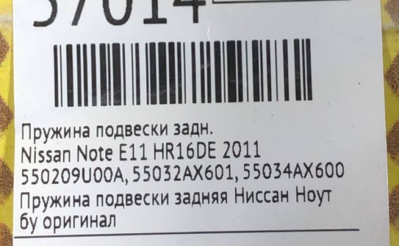 Пружина подвески Nissan Note 2011 550209U00A E11 HR16DE, задняя
