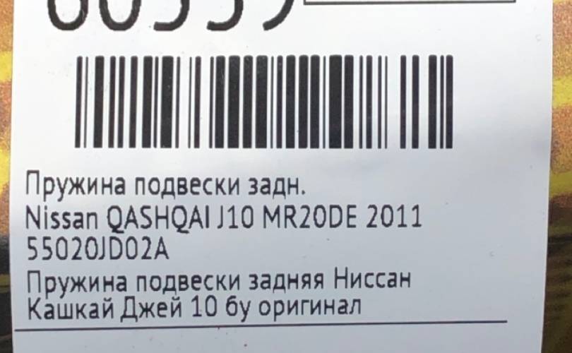 Пружина подвески Nissan QASHQAI 2011 55020JD02A J10 MR20DE, задняя