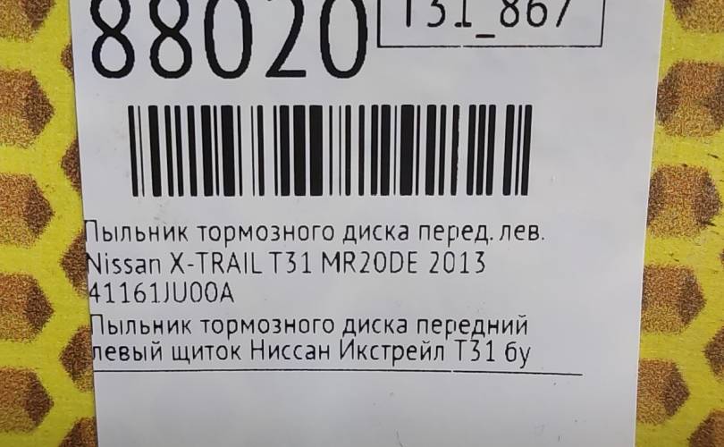 Пыльник тормозного диска Nissan X-TRAIL 2013 41161JU00A T31 MR20DE, передний левый