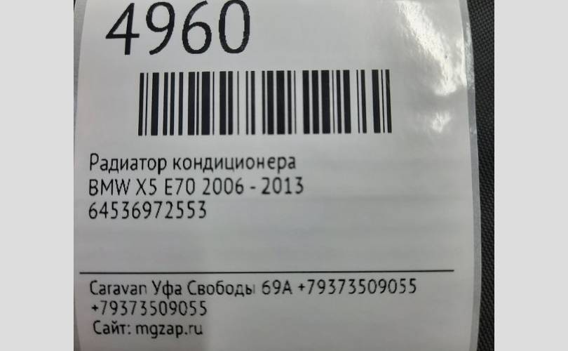Радиатор кондиционера Bmw X5 2006 - 2013 64536972553 E70