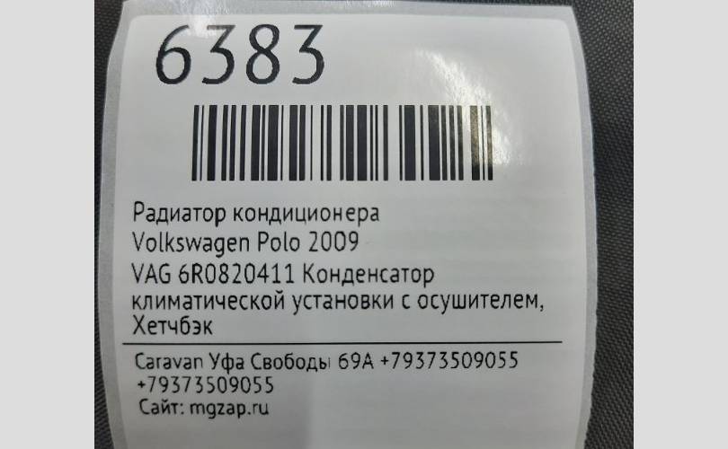 Радиатор кондиционера Volkswagen Polo 2009 6R0820411