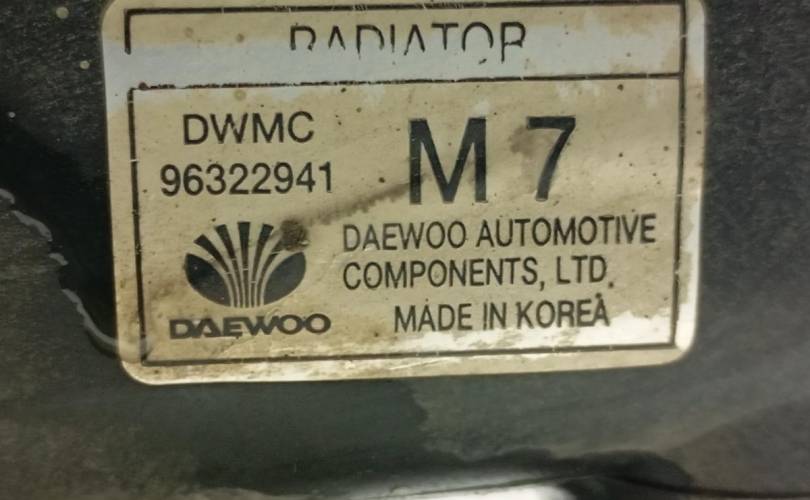 1) Наименование детали: Радиатор основной Дэу Матиз M100, M150