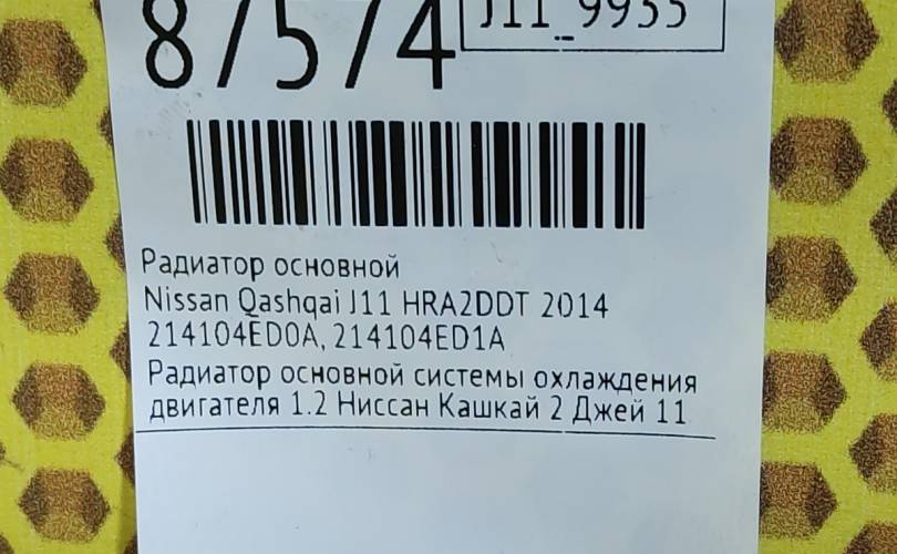Радиатор основной Nissan Qashqai 2014 214104ED0A J11 HRA2DDT