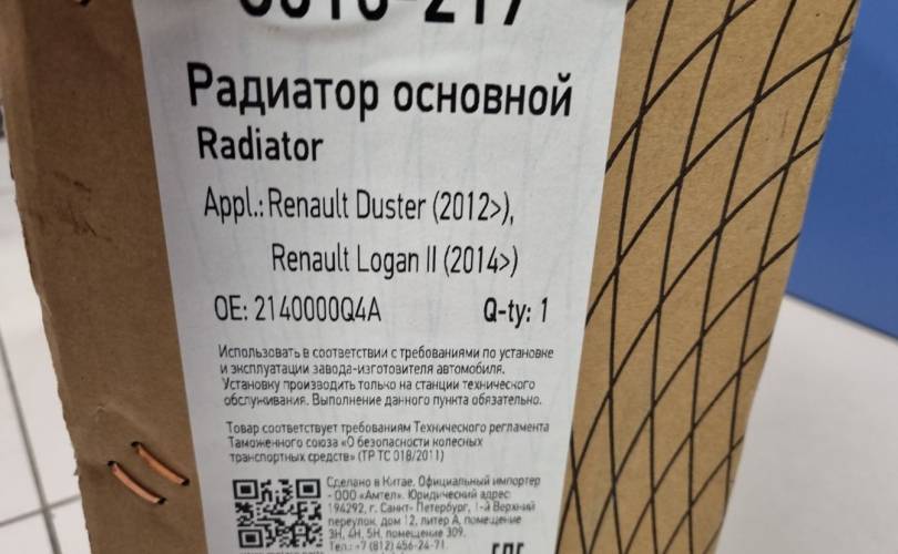 Радиатор основной охлаждения двигателя для Renault Logan 2 2014-