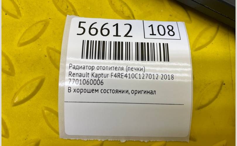 Радиатор отопителя (печки) Renault Kaptur 2018 7701060006 F4RE410C127012