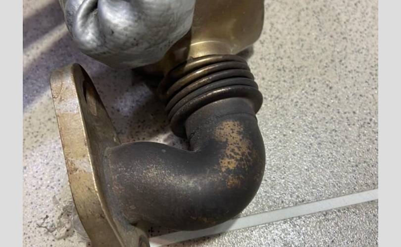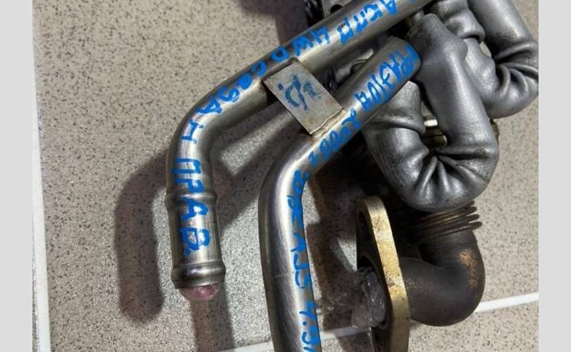 Радиатор системы EGR в сборе как на фото (правый).Разбор Фольксваген Фаэтон (Volkswagen Phaeton) 2006 год, двс AJS 4.9 л. V10 313 л. с. дизель, акпп, 4WD, кузов легковой седан, левый руль, цвет синий хамелеон.