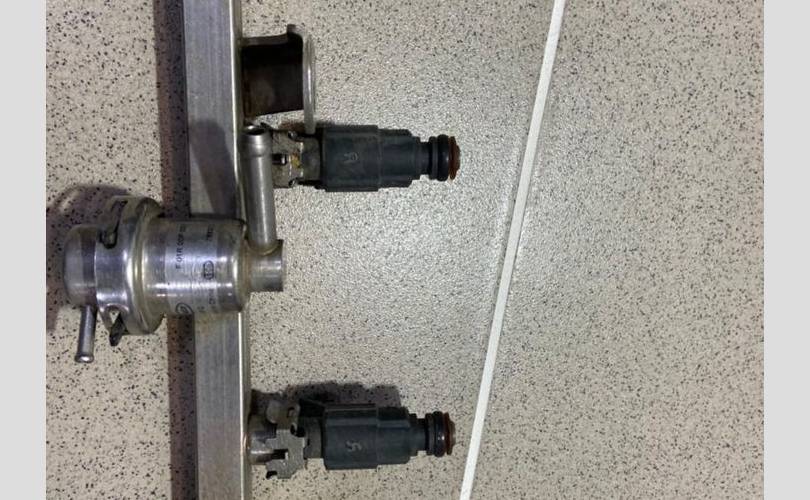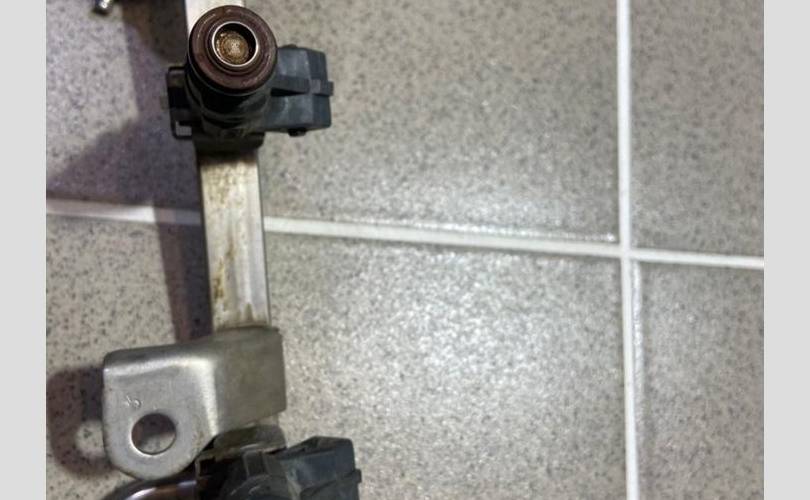 Рампа с форсунками .Разбор Джили СК-1 (Отака) 2008 год (Geely CK-1 (Otaka) 2008 г.) двс MR479QA 1.5 л. 94 л. с., механика, передний привод, кузов легковой седан, цвет тёмно-синий, левый руль, по запчастям.