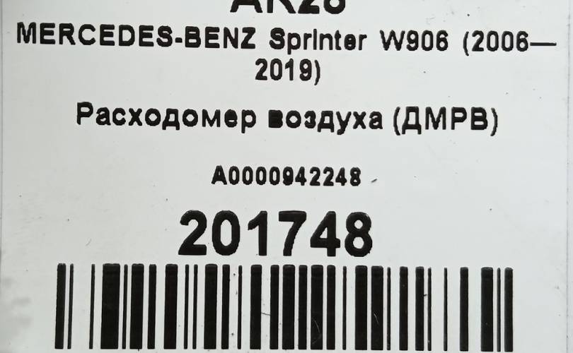 Расходомер воздуха (ДМРВ) на MERCEDES-BENZ Sprinter W906 (2006—2019) A0000942248