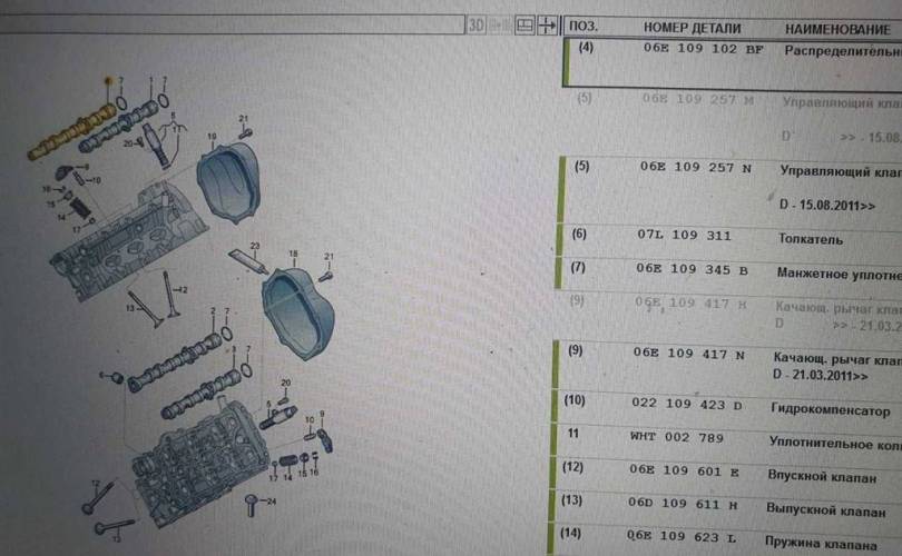Распредвал выпускной Audi A8 D4 (2010—2014) CGWA 3.0