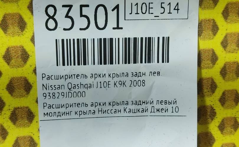 Расширитель арки крыла Nissan Qashqai 2008 93829JD000 J10E K9K, задний левый