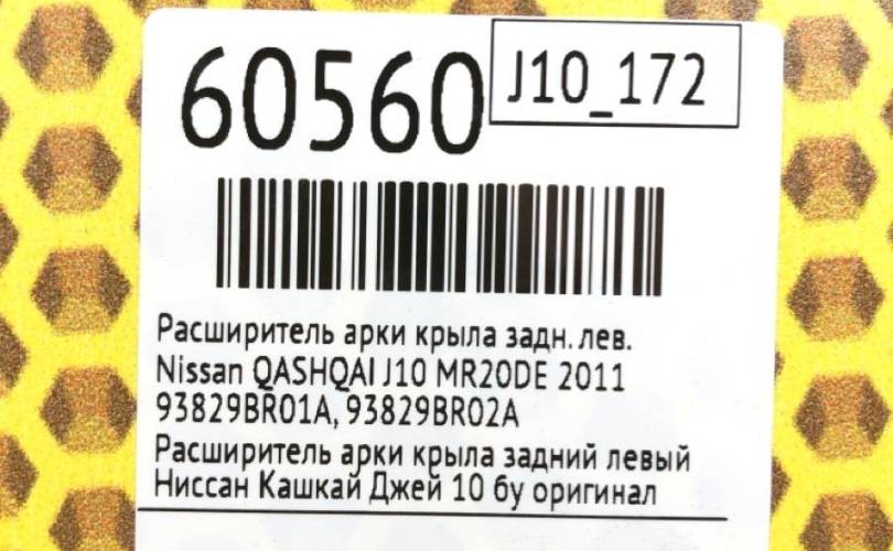 Расширитель арки крыла Nissan QASHQAI 2011 93829BR01A J10 MR20DE, задний левый