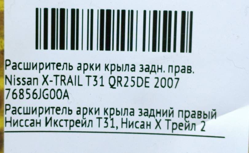 Расширитель арки крыла Nissan X-TRAIL 2007 76856JG00A T31 QR25DE, задний правый