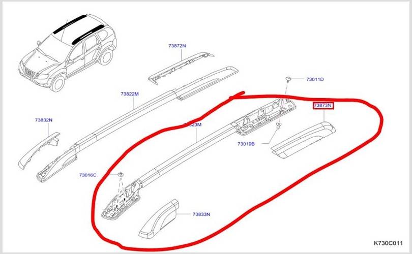 Рейлинг на крышу Nissan Terrano 2022 7382100Q0A D10 H4MD 438P160913, левый