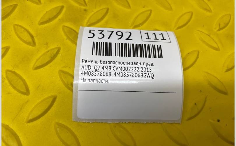 Ремень безопасности AUDI Q7 2015 4M0857806BGWQ 4MB CVM002222, задний правый