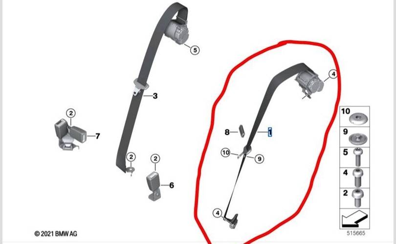 Ремень безопасности BMW X3 2019 72117469997 G01 B47D, задний левый
