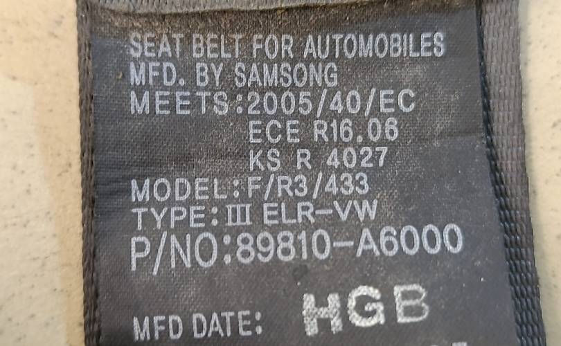 Ремень безопасности Hyundai-KIA Ceed 2012>Артикул: 89810A6000WK