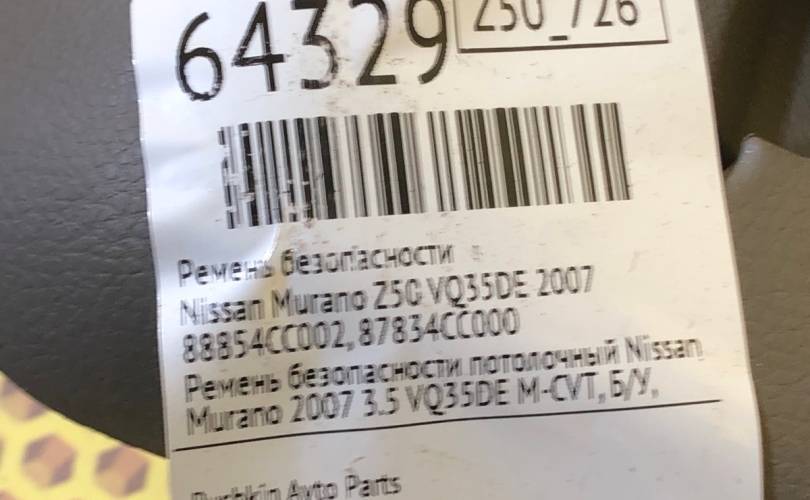 Ремень безопасности потолочный Nissan Murano 2007 3.5 VQ35DE M-CVT, Б/У, Оригинал