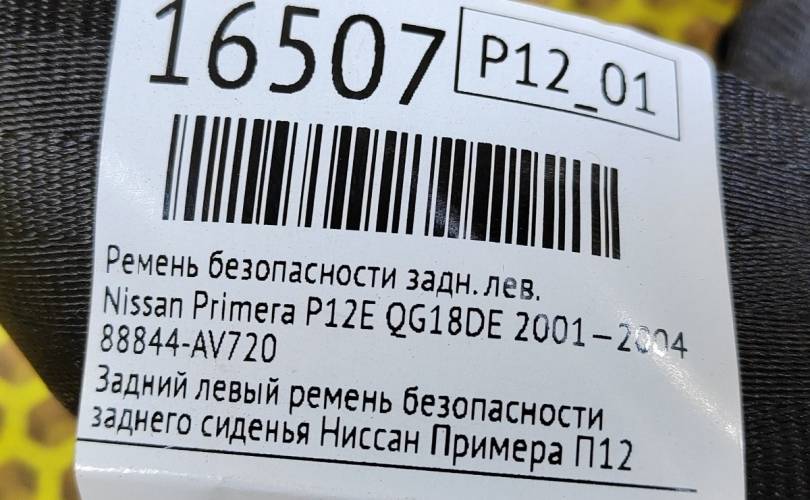 Ремень безопасности Nissan Primera 2001—2004 88844AV720 P12 QG18DE, задний левый