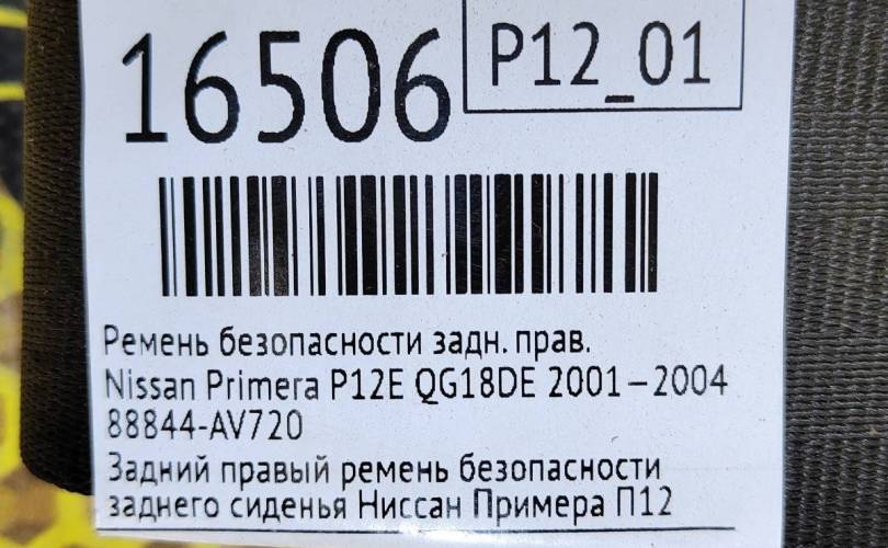 Ремень безопасности Nissan Primera 2001—2004 88844AV720 P12 QG18DE, задний правый